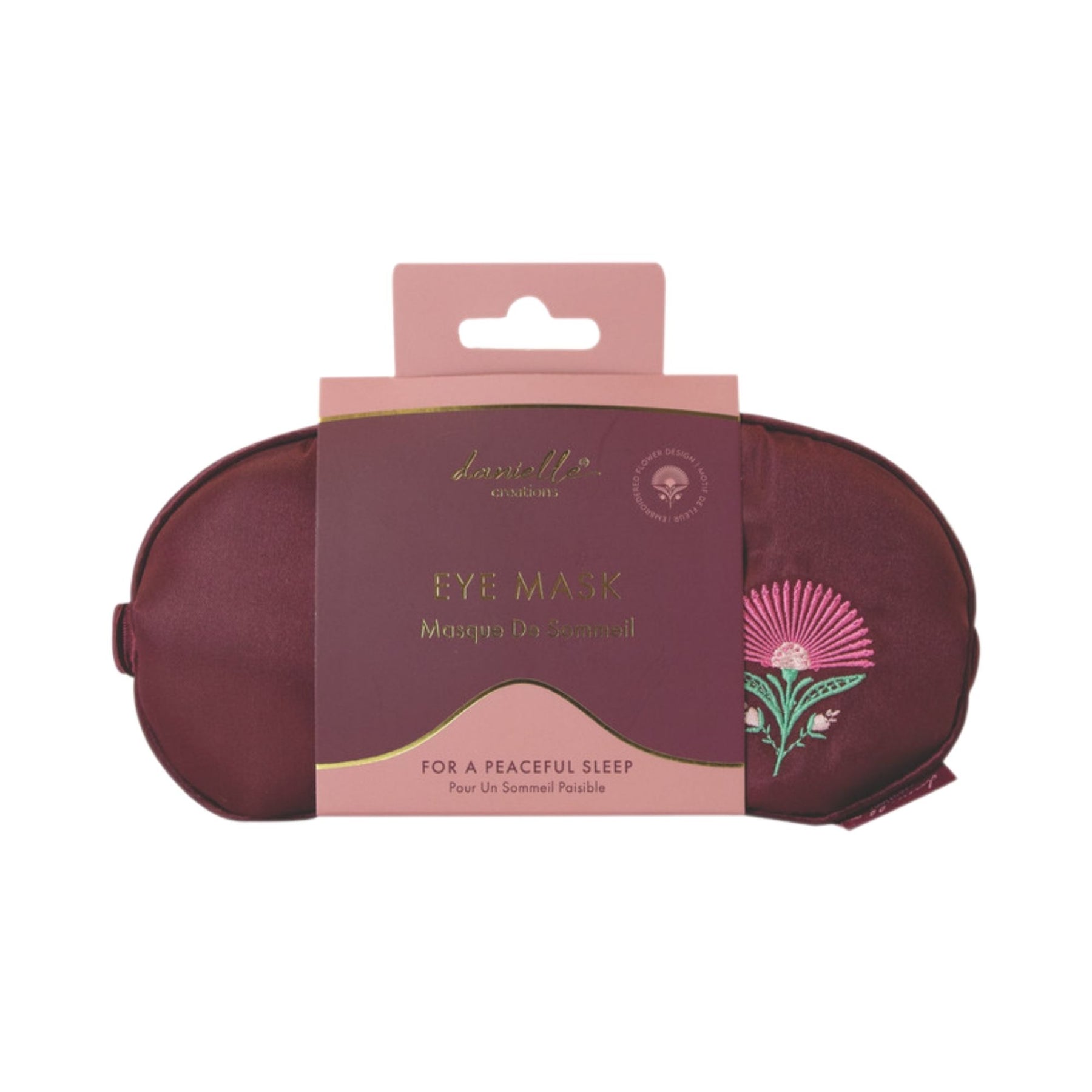 This soft satin eye mask with a floral touch helps block out light for restful sleep and relaxation.