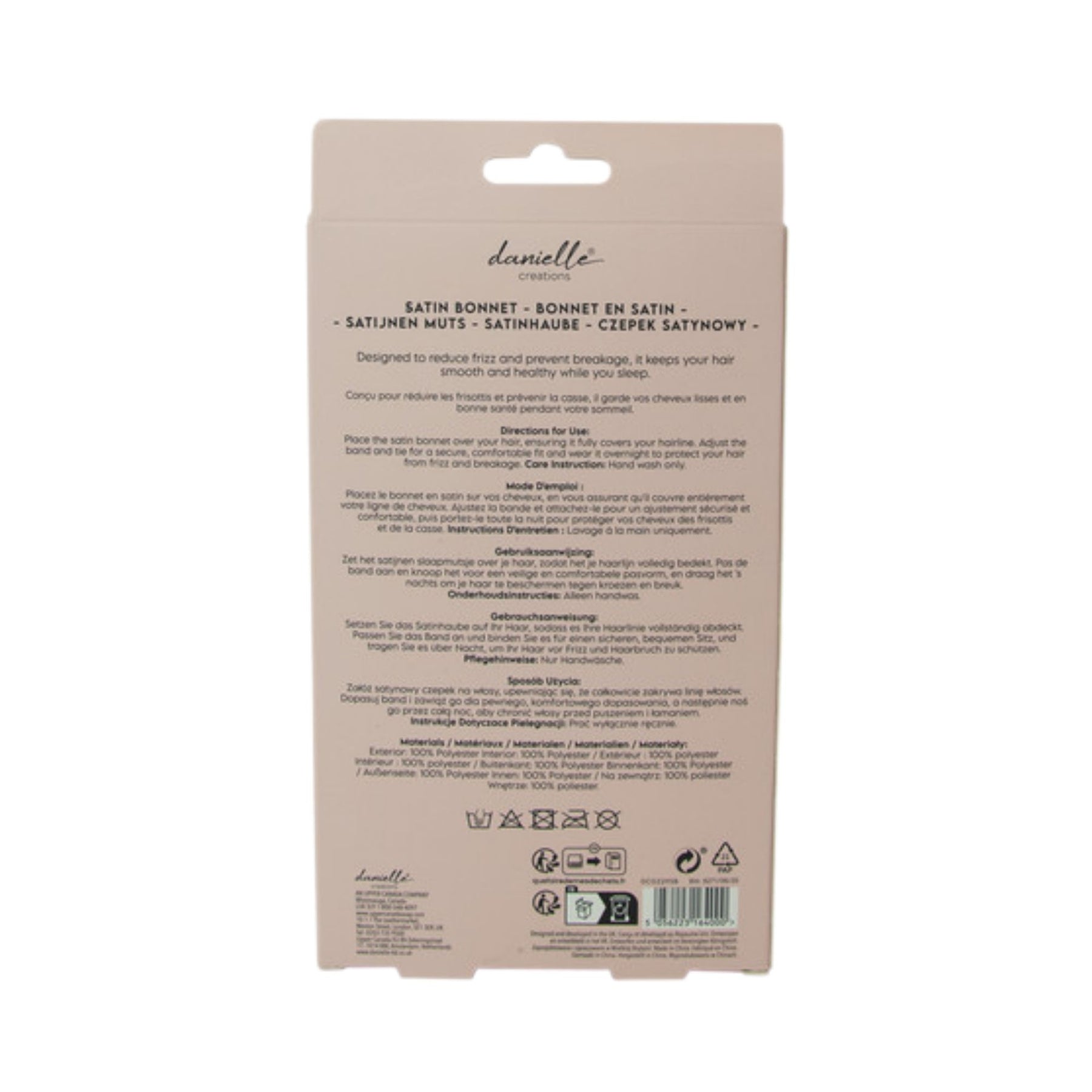 This pink satin bonnet protects hair while sleeping, helping to reduce frizz and breakage.