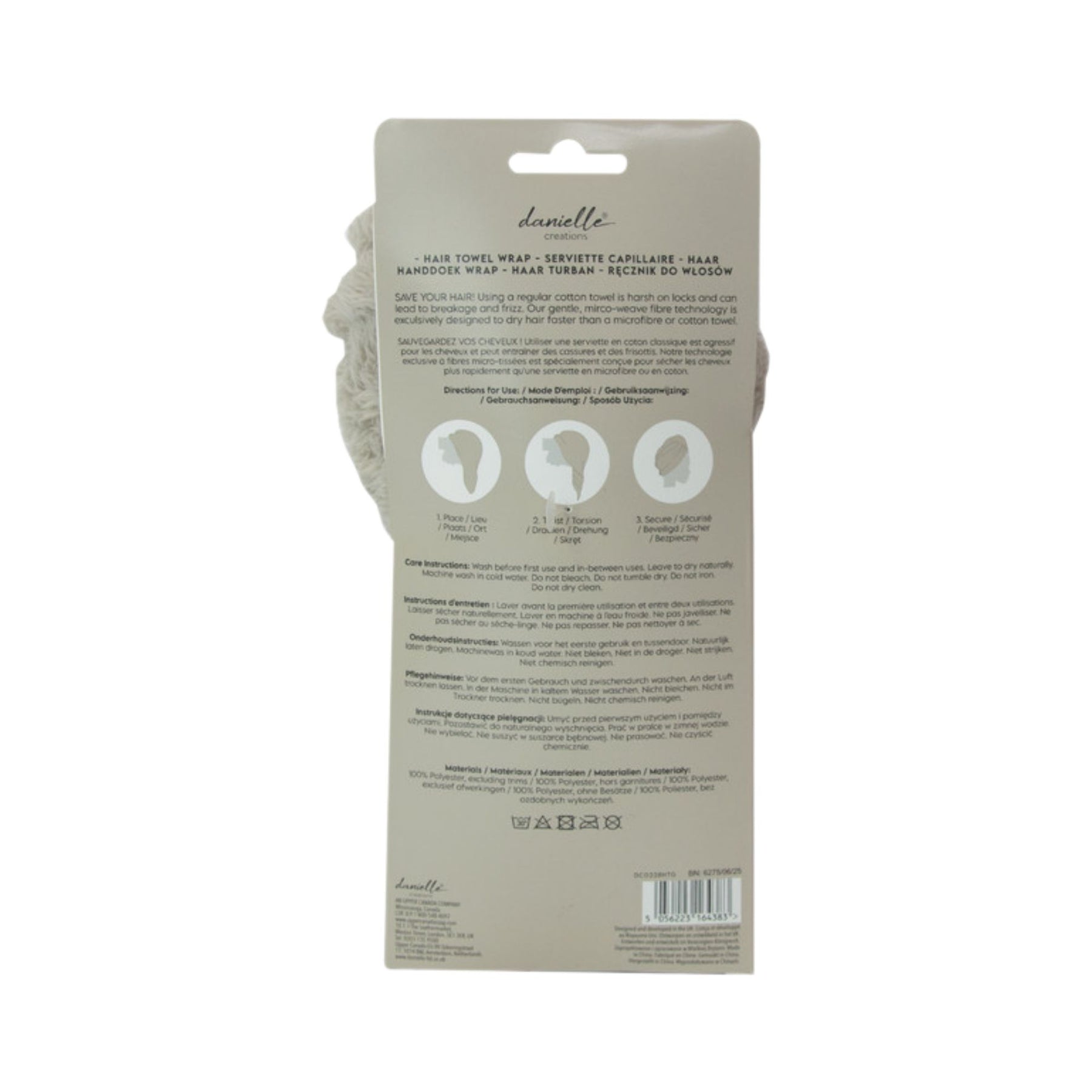 This taupe turban hair towel offers the same gentle, absorbent design to speed up drying time while keeping hair smooth and healthy.